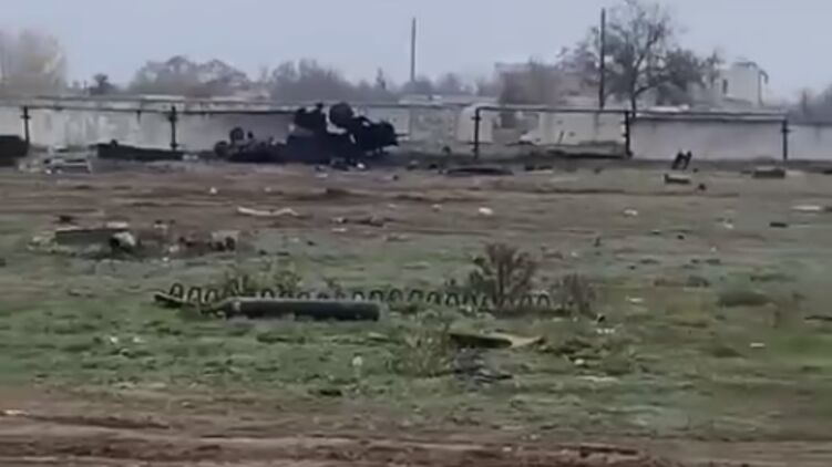 Появилось видео с разрушенной российской военной базы в Чернобаевке. Видео