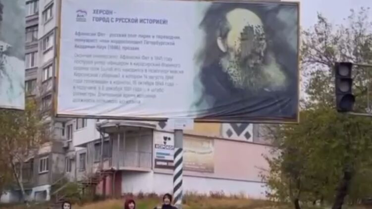 В Херсоне дети бросают камни в плакаты с Александром Пушкиным и Афанасием Фетом. Видео