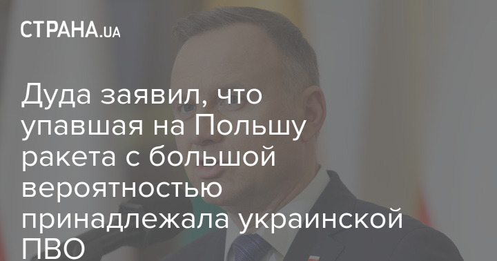 Президент Польши Анджей Дуда заявил, что ракета, которая упала вчера на приграничной с Украиной территории Польши, с большой вероятностью принадлежала украинской ПВО.