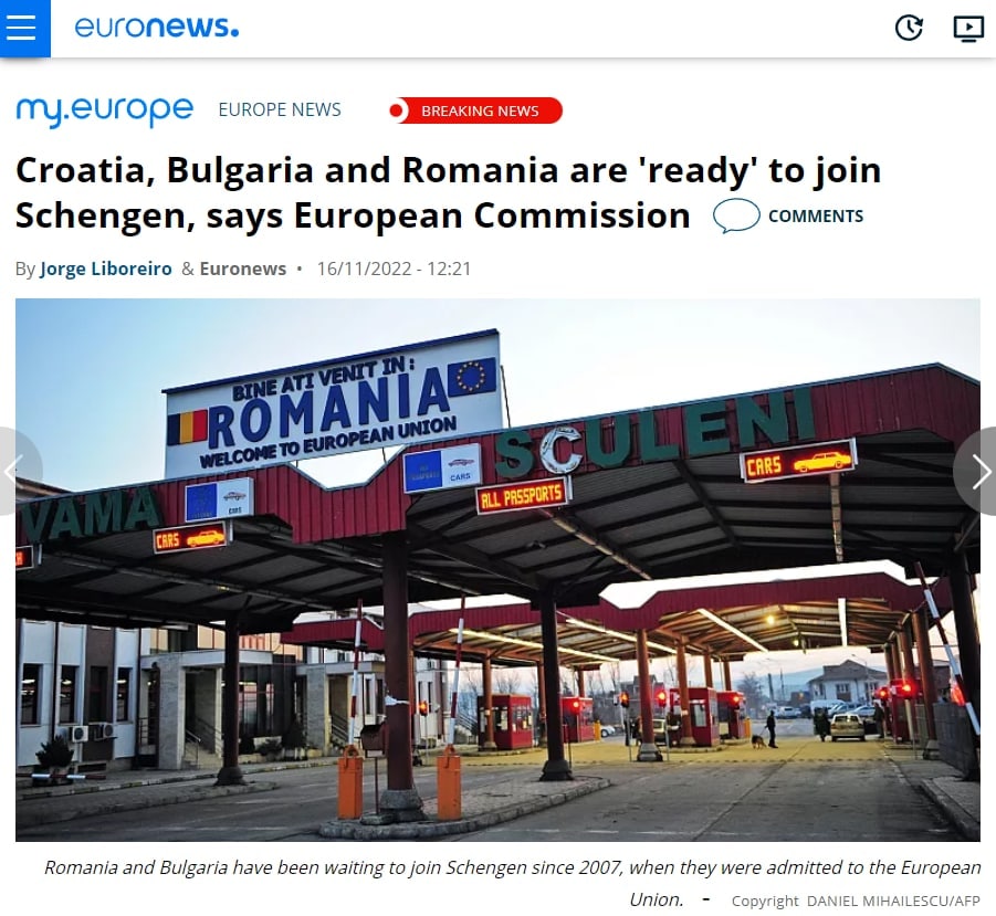 Еврокомиссия объявила о готовности Болгарии, Румынии и Хорватии присоединиться к Шенгенской зоне. Хотя им и предстоит еще выполнить для этого "необходимых критерии".