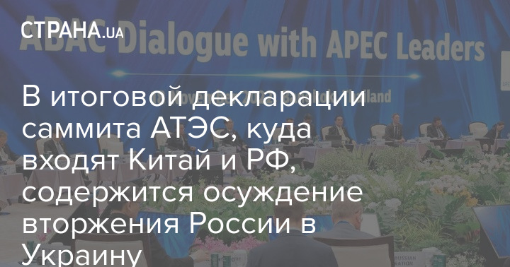 В итоговой декларации саммита АТЭС, куда входят Китай и РФ, содержится осуждение вторжения России в Украину