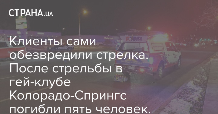 В воскресенье, 20 ноября, в ночном ЛГБТ-клубе в Колорадо-Спрингс (штат Колорадо, США) произошла стрельба. В результате инцидента по меньшей мере пять человек погибли и еще 18 получили ранения.