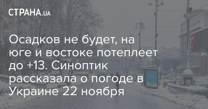 Осадков не будет, на юге и востоке потеплеет до +13. Синоптик рассказала о погоде в Украине 22 ноября