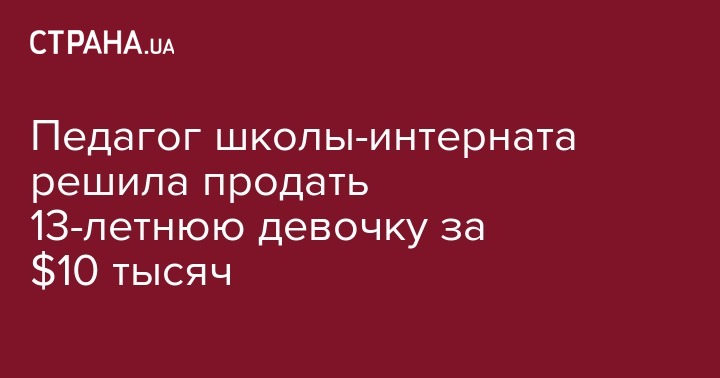 В понедельник, 21 ноября правоохранители уголовного розыска, прокуратуры и следственного управления Главного управления Национальной полиции в Харьковской области пресекли попытку педагога одной из школ-интернатов продать 13-летнюю воспитанницу за $10 тыс. Сотрудницу интерната уже задержали и сообщили о подозрении, передает пресс-служба прокуратуры Харьковской области.