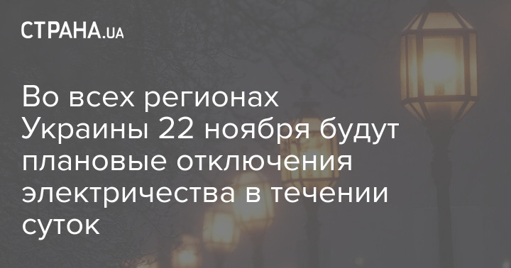 Завтра, 22 ноября, с 00.00 до 24.00 во всех регионах Украины будут применены плановые отключения света.