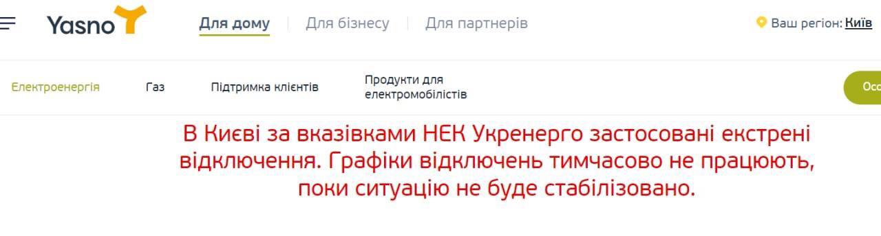 В Киеве после прилётов начались экстренные отключения света. Графики плановых отключений временно не работают.