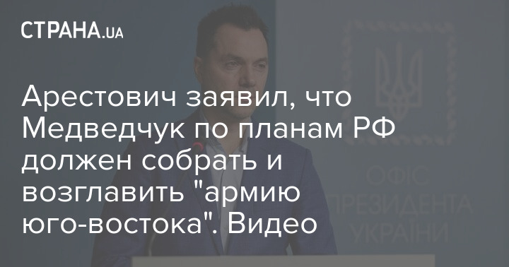 Советник Офиса президента Алексей Арестович заявил, что бывший нардеп Виктор Медведчук, который по обмену был передан России и которого недавно с женой заметили на набережной в Ялте, должен по планам РФ собрать и возглавить некую "армию юго-востока".