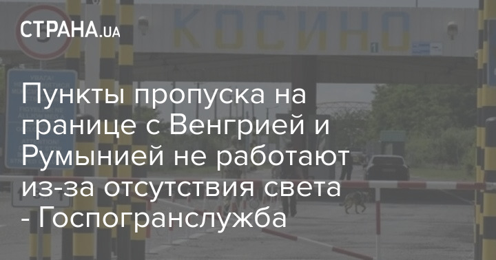 "Из-за отсутствия электропитания, оформление лиц и транспорта в пункте пропуска "Солотвино" на границе с Румынией, и в пунктах пропуска "Косино" и "Дзвинково", - на границе с Венгрией, не осуществляется", - сообщает Госпогранслужба.
