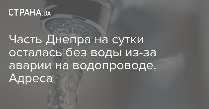 Значительная часть города Днепр на сутки останется без водоснабжения из-за аварии на водопроводе.