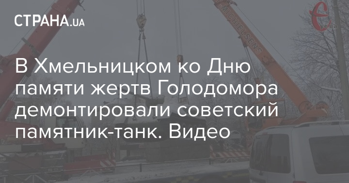 В Хмельницком демонтировали советский памятник-танк, который простоял в городе более 40 лет. Акция была приурочена ко Дню памяти жертв Голодомора.