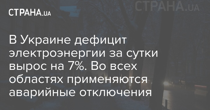 В Украине дефицит электроэнергии за сутки вырос на 7%. Во всех областях применяются аварийные отключения