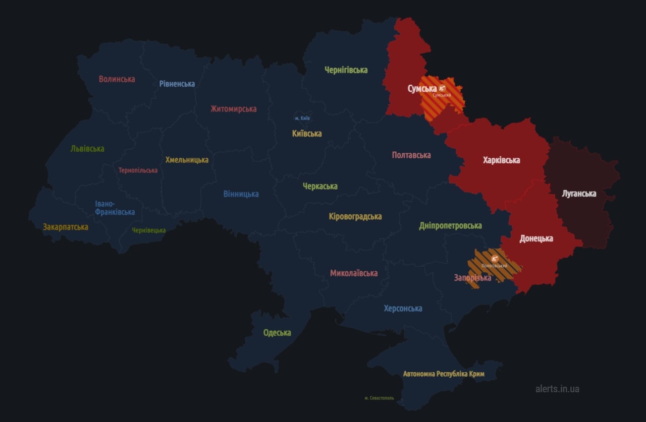 09.10 В ряде областей Украины звучит воздушная тревога.