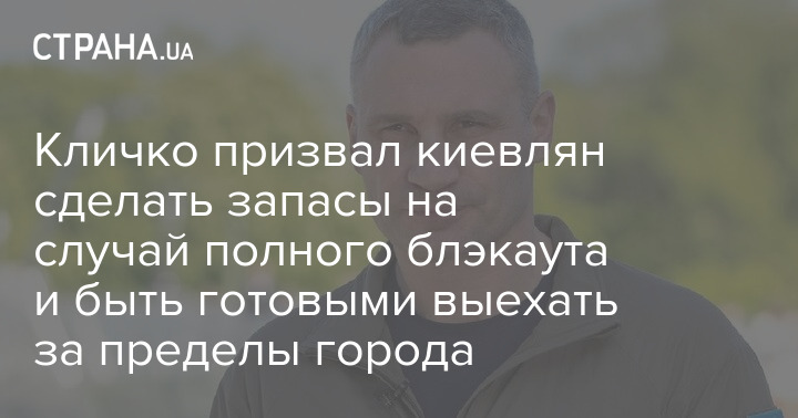 Мэр Киева Виталий Кличко призвал киевлян иметь запас технической и питьевой воды, запас продуктов длительного хранения, теплые вещи на случай полного блэкаута, а также рассмотреть возможность временного выезда за пределы Киева.