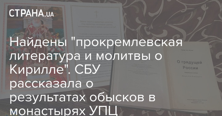 В Фейсбуке спецслужбы утверждается, что "на территории епархий обнаружены склады с прокремлевской литературой, нацистская символика, "учение о сатанизме" и тексты молитв о московском патриархе Кирилле".