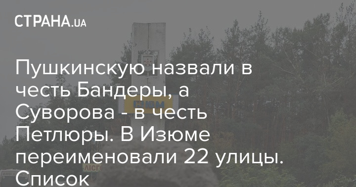 В частности, улицы Пушкинскую и Суворова переименованы в улицы Бандеры и Петлюры соответственно.