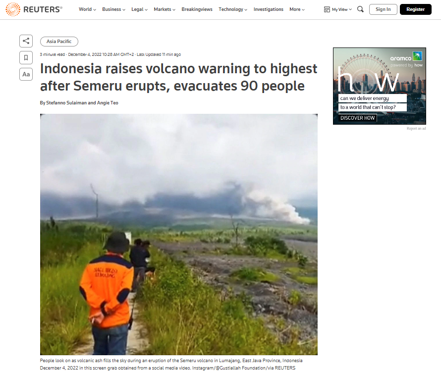 По всему миру продолжают просыпаться вулканы. Сегодня, 4 декабря, на острове Ява в Индонезии произошло извержение вулкана Семеру - власти сообщают о максимальном уровне опасности.