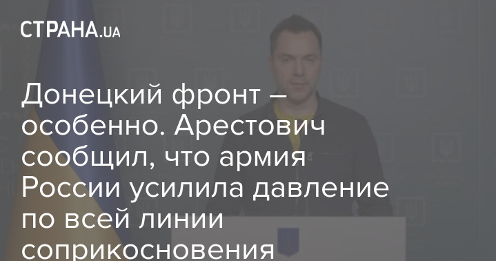 Донецкий фронт – особенно. Арестович сообщил, что армия России усилила давление по всей линии соприкосновения