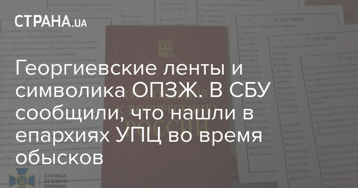 Как сказано в записи, на территории епархий найдены российские паспорта, георгиевские ленты, символика ОПЗЖ и "методички" патриарха РПЦ Кирилла "по распространению пропаганды через верующих".