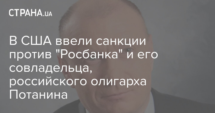 Потанин был внесен в санкционный список Госдепартаментом США, а OFAC внесло в свой перечень "Росбанк", который олигарх приобрел в этом году. Центральный банк РФ считает "Росбанк" системно значимым кредитным учреждением для правительства РФ. В текущем году Великобритания и Канада уже включили "Росбанк" в свои санкции.