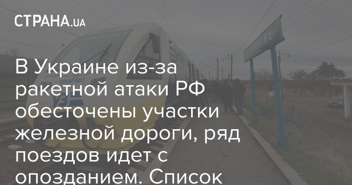 В пятницу, 16 декабря, ряд участков железной дороги в Украине обесточен из-за российских ударов по объектам энергетики. Из-за этого 17 поездов "Укрзализныци" следуют с задержками более чем на 30 минут.