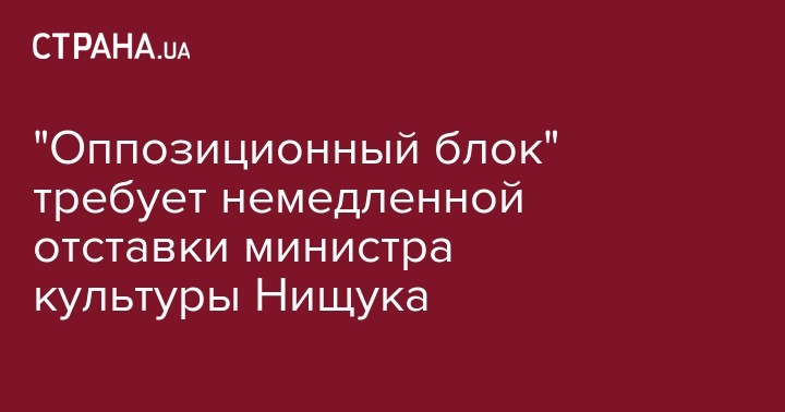 Партия "Оппозиционный блок" выступил за немедленную отставку министра культуры Евгения Нищука. Об этом сообщается на сайте партии.