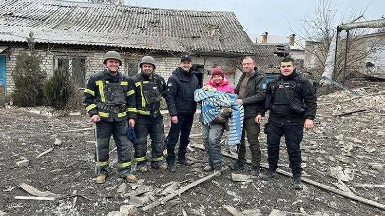 Никого не подпускала и ждала хозяйку. В Купянске спасатели освободили собаку из-под завалов аптеки. Фото