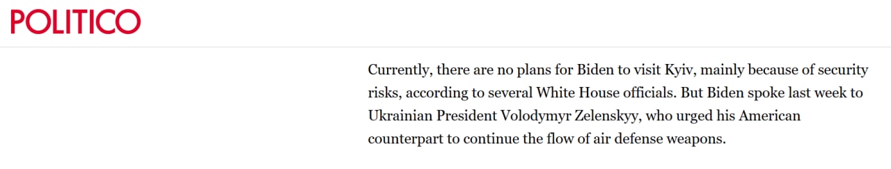 09.25 Президент США Байден в ближайшее время не планирует посещать Киев. В основном из-за угроз безопасности.