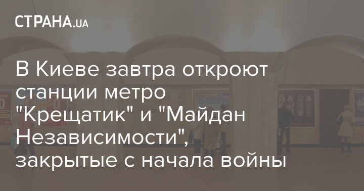 Во вторник, 20 декабря, в Киеве откроют две станции метро, закрытые для пассажиров с начала полномасштабного вторжения РФ в Украину. Это "Крещатик" и "Майдан Независимости".