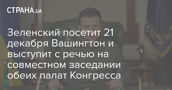 Зеленский посетит 21 декабря Вашингтон и выступит с речью на совместном заседании обеих палат Конгресса