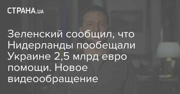 Зеленский сообщил, что Нидерланды пообещали Украине 2,5 млрд евро помощи. Новое видеообращение