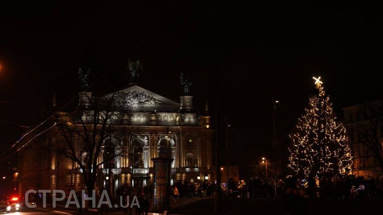 Во Львове в честь Рождества подсветили елку и оперный театр. Фото: "Страна"