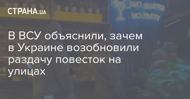 Начальник управления персонала штаба командования Сухопутных войск ВСУ Роман Горбач заявил, что раздача повесток происходит в общественных местах, потому что вручать повестки по домашним адресам малоэффективно – люди не открывают двери.