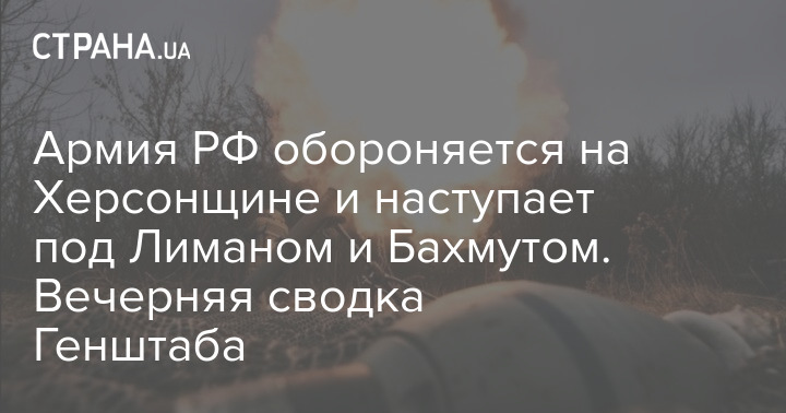 Армия РФ обороняется на Херсонщине и наступает под Лиманом и Бахмутом. Вечерняя сводка Генштаба