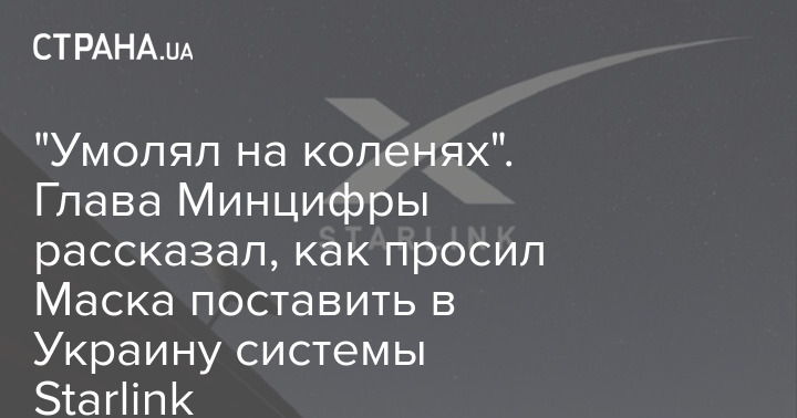 Глава Минцифры Михаил Федоров заявил, что "на коленях" умолял американского миллиардера Илона Маска передать Украине системы спутникового интернета Starlink.