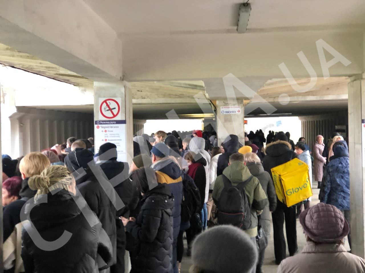Также большая людская пробка образовалась в районе метро "Черниговская". Метро сейчас ходит с интервалом 7-10 минут.
