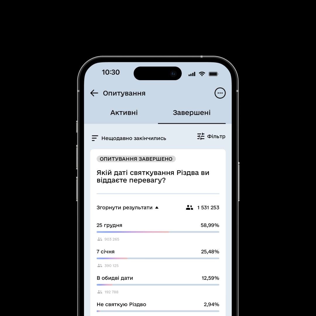 Голосование по дате празднования Рождества, запущенное в "Дие" 24 декабря, завершилось. Из 1,5 млн голосовавших в течение недели более 900 тысяч отдали голос за дату празднования 25 декабря.