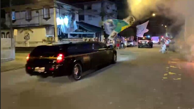 Гроб с телом бывшего бразильского форварда Пеле доставлен на стадион ФК "Сантос". Скриншот видео