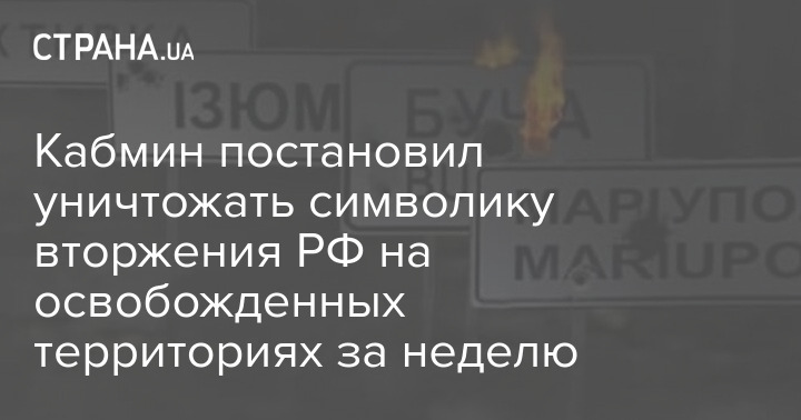 Согласно документу, в течение недели с момента деоккупации должна быть уничтожена символика, определенная законом "О запрете пропаганды российского нацистского тоталитарного режима, вооруженной агрессии Российской Федерации как государства-террориста против Украины, символики военного вторжения российского нацистского тоталитарного режима в Украину".