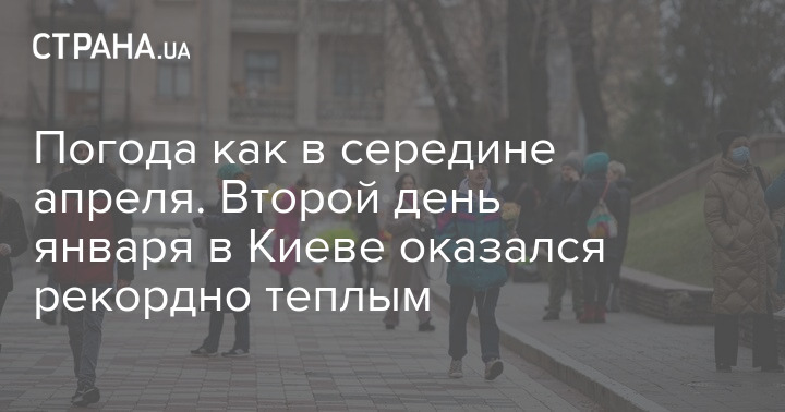 Аномально теплая погода в начале января в Киеве снова побила рекорды. 2 января в столице впервые за 143 года наблюдений среднесуточная температура воздуха составила +9,4 градуса, что на 3,9 градуса выше предыдущего рекордного значения, зафиксированного в этот день в 2007 году.