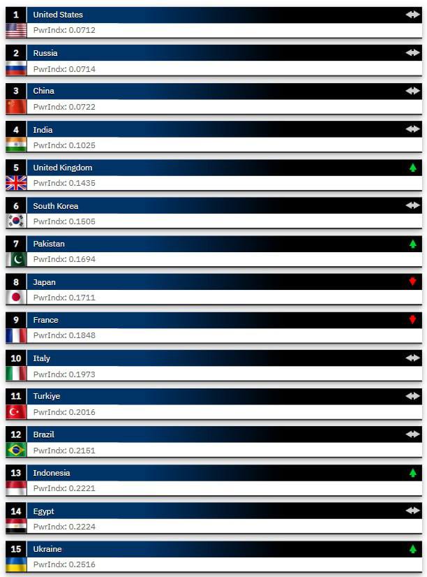 Новые данные показывают, что Россия осталась на втором месте после США. Рейтинг оценивает военный потенциал 145 стран.
