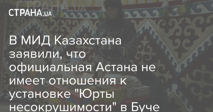 МИД Казахстана заявил, что посольство Казахстана в Украине не имеет отношения к появлению "Юрты несокрушимости" в Буче, это частная инициатива казахстанских бизнесменов-меценатов.