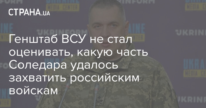 В Генштабе ВСУ сухо прокомментировали ситуацию в Соледаре по состоянию на сегодняшний день. Журналисты попросили военных оценить, какой процент города контролирует РФ, однако в Генштабе назвали такие оценки некорректными.