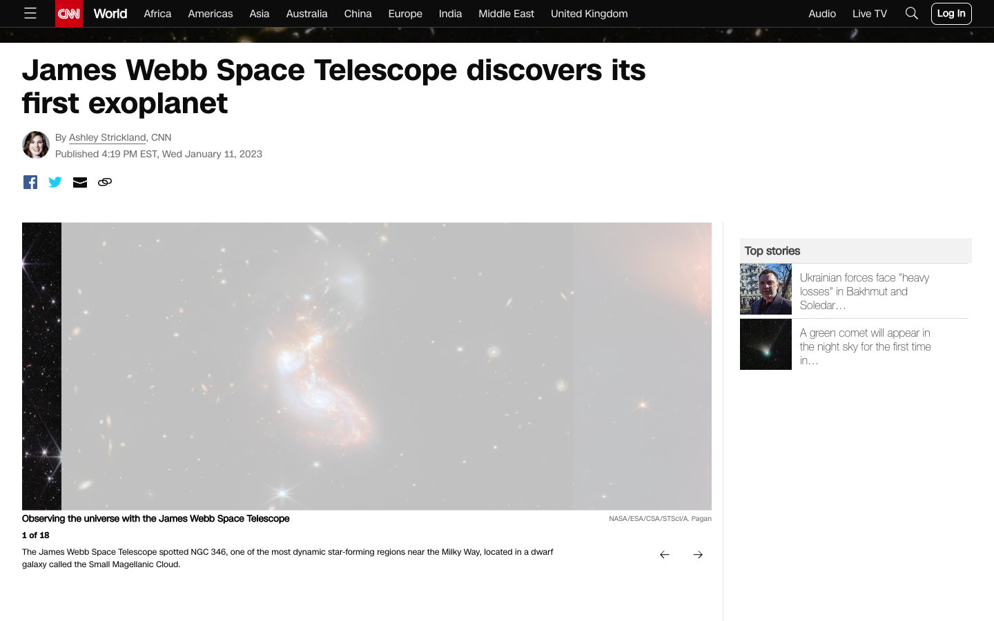 Телескоп "Джеймс Уэбб" открыл первую планету за пределами Солнечной системы (экзопланету).