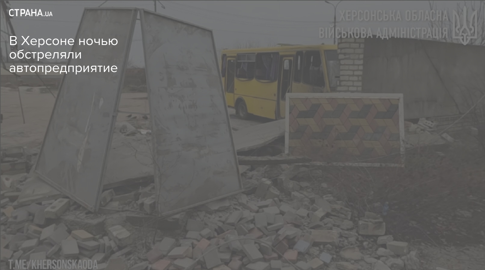 В Херсоне ночью обстреляли автотранспортное предприятие. Повреждены 16 автобусов, легковые автомобили, склады и здание для охраны - по предварительной информации, один из охранников получил ранения.