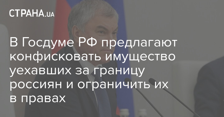 Председатель Госдумы РФ Вячеслав Володин предложил конфисковать имущество уехавших россиян, которые, по его словам, "поддерживают нацистов" и "оскорбляют Россию и российских солдат".