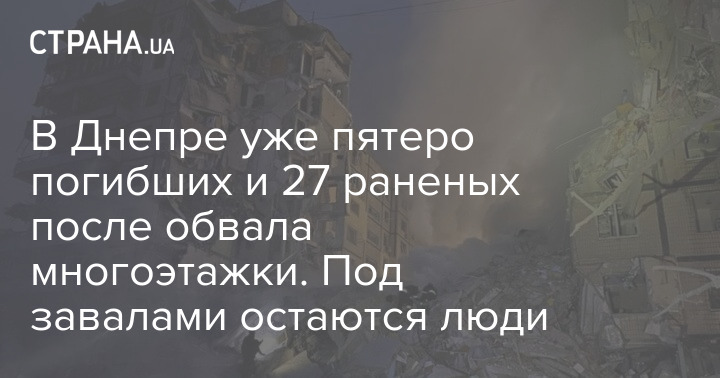 После российского ракетного удара по многоэтажному дому в Днепре уже известно о пяти погибших и 27 раненых. Среди них шестеро детей.