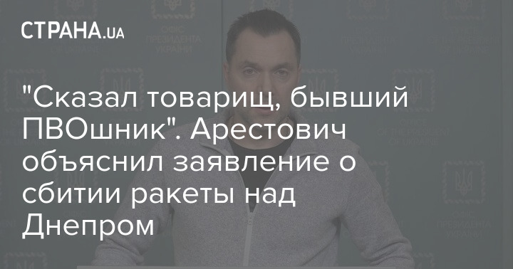 "Сказал товарищ, бывший ПВОшник". Арестович объяснил заявление о сбитии ракеты над Днепром