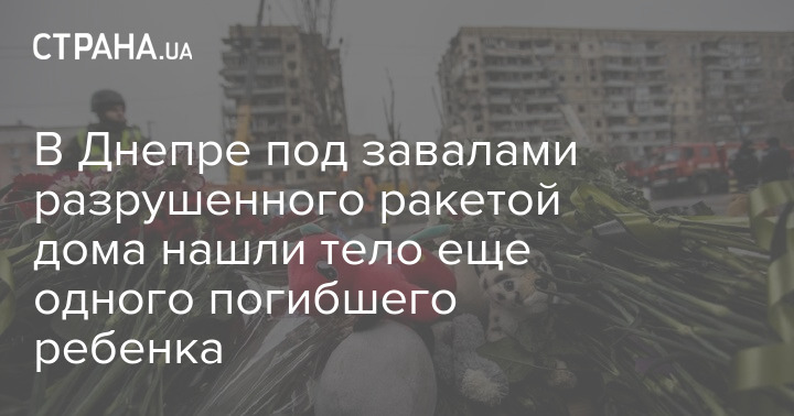 В Днепре из-под завалов дома утром 17 января извлекли тело ещё одного погибшего ребенка. Таким образом число погибших детей после ракетной атаки 14 января достигло четырех. А в целом жертв - 41.