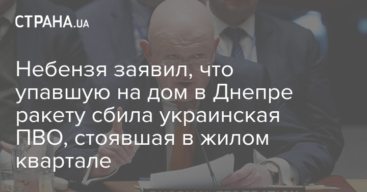 "Российская ракета, запущенная по объекту инфраструктуры города, была подбита силами ПВО Украины. Поскольку установка ПВО была в нарушение норм международного гуманитарного права... размещена в жилом квартале, сбитая ракета упала на жилой дом", - сказал Небензя.