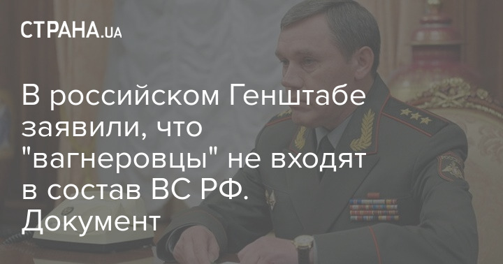 Начальник Генштаба Вооруженных сил России Валерий Герасимов сообщил, что ЧВК "Вагнер" в состав ВС РФ не входит.